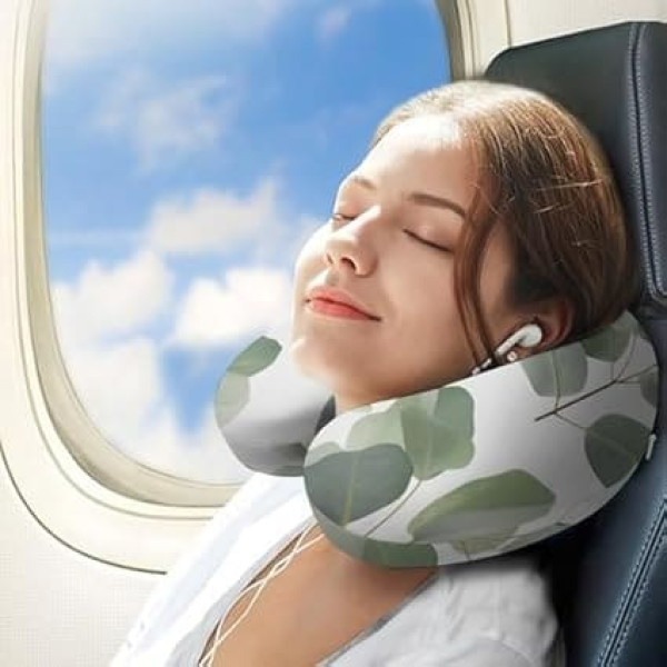 TKJMCSW Eukalyptusblätter Reisekissen Memory Foam Nackenkissen Flugzeugkissen zum Schlafen U-förmiges Nackenkissen für Nacken- und Kopfstütze