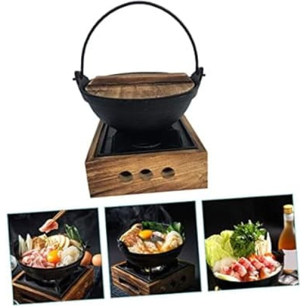 LABRIMP Sukiyaki Pan Sets Pancake Turner Fondue Chinoise Soup Cooker Fondue Warmer Japanese Pot Non-Sticky Cookware Hub Home Pot Camping Cooking Pot Wood + Iron