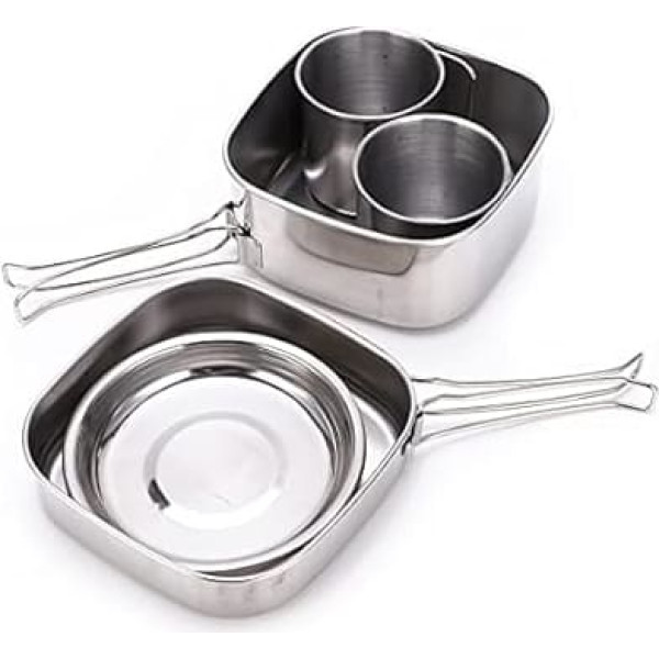 This camping cookware is made of high quality stainless steel, which is durable and lightweight. Easy to clean and store, with folding handle. The cookware set comes with a carry bag that is easy to store and transport outdoors. Easy to use, you can prepare a variety of dishes in just a few minutes. Folding handle design, easy to carry and space-saving. A set of pots is versatile and meets the requirements of cooking vigorously at home or at a picnic, frying, stir-frying, cooking or frying. Ideal for camping, hiking, backpacking, picnic and other outdoor activities and offers you more comfort. › See more product details; Product description Specification: Item Type:Camping Cookware Material: stainless steel. Colour: silver. Package list: 1 x large pot. 1 x frying pot. 2 x bowls. 2 x cups. 1 x storage bag.; Product description Specification: Item Type:Camping Cookware Material: stainless steel. Colour: silver. Package list: 1 x large pot. 1 x frying pot. 2 x bowls. 2 x cups. 1 x storage bag.; Specification: Item Type:Camping Cookware Material: stainless steel. Colour: silver. Package list: 1 x large pot. 1 x frying pot. 2 x bowls. 2 x cups. 1 x storage bag.