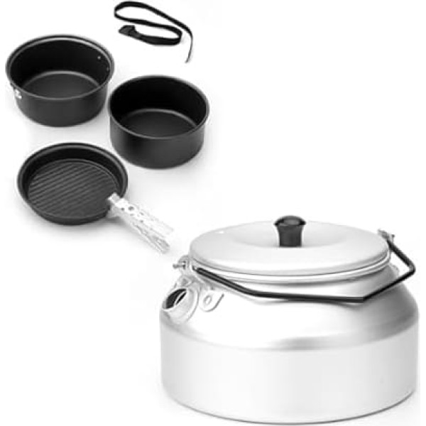 Jemora Kochtöpfe, Pfannen, Wasserkocher-Set, leicht, tragbar, Camping-Kochgeschirr, Kochset für Camping, Wandern, Picknick