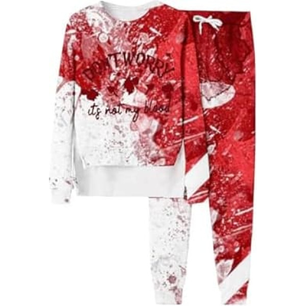 Eauptffy Tracksuit Damen Baggy, Sweatshirt und Trainingshosen, Pulli Set Horror mit Blut Laufenanzug 2-Teiliges Rundhals Tracksuit Baggy Lässiger Loungewear Halloween Mode Sport Set Running