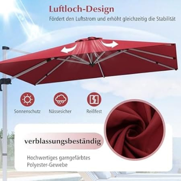 Costway Rectangular Parasol 300 x 300 cm, Large Cantilever Parasol with Crank, Garden Umbrella Tiltable, 360° Rotatable, Patio Umbrella, Market Umbrella for Garden, Patio, Balcony (Wine Red)