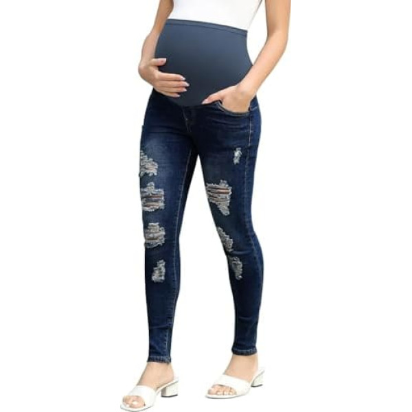 Maacie Maternity Trousers Jeans Stretchy Pregnancy Jeans High Waist Trousers for Pregnant Women