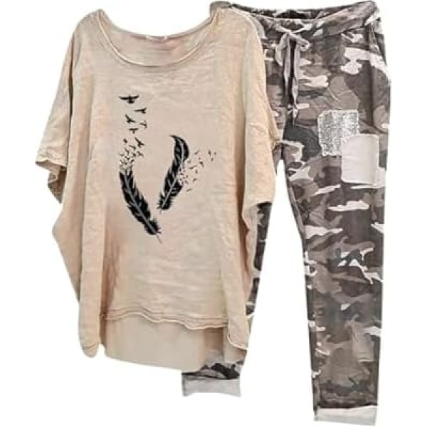 Briskorry Damen Set Zweiteiler, Tshirt Weit Hose, Hosenanzug Casual Lose Hausanzug Kurzarm Rundhalsausschnitt Sportanzug Luftig Leichter Sport Outfit Einfarbiger Elegante Sport