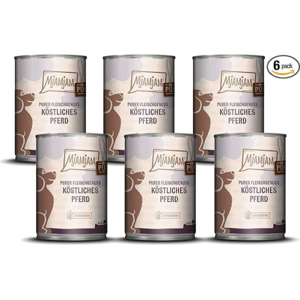 MjAMjAM - Premium Wet Food for Dogs - Pure Meat Enjoyment - Delicious Pure Horse, Pack of 6 (6 x 400 g), Grain-Free with Extra Meat