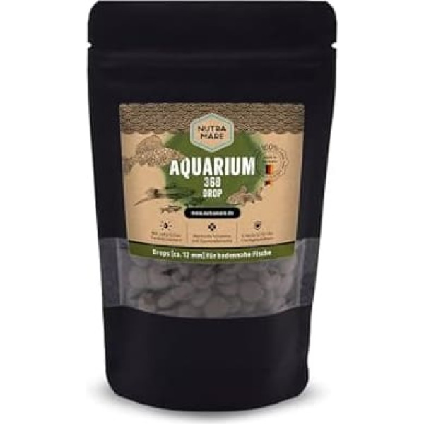 Aquarium food tablets for bottom fish and crayfish as main food Only high-quality raw materials for optimal growth, intense colours and low water pollution Colour-enhancing effect thanks to spirulina from micro algae and astaxanthin 24 hours of dimensionally stable feeding tablets, no turbidity of the aquarium water High acceptance and natural eating behaviour thanks to high fishmeal content and 12 mm diameter of the food tablets › See more product details; Product description Product description The Nutramare Aquadrop360 food tablets ensure optimal supply of all bottom fish in the aquarium. Thanks to the long dimensional stability and slow swelling of the food tablets, the fish can easily pluck the food particles. Our Nutramare Aquadrop360 aquarium food has been made with particularly high-quality raw materials and thus ensure optimal growth, intensive colour development and strengthened health of the fish. The high-quality raw materials help to reduce the natural strain of aquarium water. The food tablets can be fed as complete food for bottom fish or as main food for all aquarium fish. Indications Adult; Product description Product description The Nutramare Aquadrop360 food tablets ensure optimal supply of all bottom fish in the aquarium. Thanks to the long dimensional stability and slow swelling of the food tablets, the fish can easily pluck the food particles. Our Nutramare Aquadrop360 aquarium food has been made with particularly high-quality raw materials and thus ensure optimal growth, intensive colour development and strengthened health of the fish. The high-quality raw materials help to reduce the natural strain of aquarium water. The food tablets can be fed as complete food for bottom fish or as main food for all aquarium fish. Indications Adult; Product description The Nutramare Aquadrop360 food tablets ensure optimal supply of all bottom fish in the aquarium. Thanks to the long dimensional stability and slow swelling of the food tablets, the fish can easily pluck the food particles. Our Nutramare Aquadrop360 aquarium food has been made with particularly high-quality raw materials and thus ensure optimal growth, intensive colour development and strengthened health of the fish. The high-quality raw materials help to reduce the natural strain of aquarium water. The food tablets can be fed as complete food for bottom fish or as main food for all aquarium fish. Indications Adult