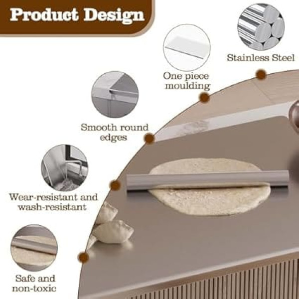LARGE CUTTING BOARD Measures 90 x 50 cm, 0.15 cm thick, perfect for all your cutting and cutting needs in the kitchen 304 Stainless Steel: This chopping board made of food grade 304 stainless steel is durable enough to withstand high pressure without hurting the surface. Besides, it is easy to clean and safe to wash in the dishwasher. NON-SLIP DESIGN The additional erected edge attaches securely and seamlessly to your counter and helps stabilize the cutting board during operation. The right angle side and worktop form an angle of 90° that fits perfectly on the kitchen tabletop. Smooth and round corners: all the edges and corners of the large cutting board are smoothly polished and rounded, which will not damage the table surface, protect your hands well from scratches, also looks beautiful Cutting and kneading board: for cutting vegetables, fruits, meat as well as for kneading, rolling pizza, biscuits, rolls, bread sweets, macaron, pastries, biscuits and other dough, etc. A matching rolling pin is included › See more product details; Product description Size: 90 x 50 cm (L x W). Thickness: 1.5mm Rolling pin 30 x 3 cm. Material: stainless steel. Weight: 5 kg. Material: food grade 304 stainless steel. Package Content:1 x Rolling Board + 1 x Rolling Stick Special features: 304 high quality material that is healthy, durable, easy to clean and stain resistant. The lip design fits perfectly on the kitchen tabletop. - Large size to meet all your cutting and cutting needs in the kitchen. Smooth surface and good touch feeling. - A matching rolling pin is included so you don't have to buy another one.; Product description Size: 90 x 50 cm (L x W). Thickness: 1.5mm Rolling pin 30 x 3 cm. Material: stainless steel. Weight: 5 kg. Material: food grade 304 stainless steel. Package Content:1 x Rolling Board + 1 x Rolling Stick Special features: 304 high quality material that is healthy, durable, easy to clean and stain resistant. The lip design fits perfectly on the kitchen tabletop. - Large size to meet all your cutting and cutting needs in the kitchen. Smooth surface and good touch feeling. - A matching rolling pin is included so you don't have to buy another one.; Size: 90 x 50 cm (L x W). Thickness: 1.5mm Rolling pin 30 x 3 cm. Material: stainless steel. Weight: 5 kg. Material: food grade 304 stainless steel. Package Content:1 x Rolling Board + 1 x Rolling Stick Special features: 304 high quality material that is healthy, durable, easy to clean and stain resistant. The lip design fits perfectly on the kitchen tabletop. - Large size to meet all your cutting and cutting needs in the kitchen. Smooth surface and good touch feeling. - A matching rolling pin is included so you don't have to buy another one.