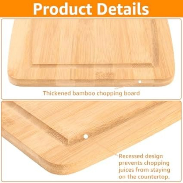 Package includes: our 5 sturdy bamboo breakfast boards (28 x 18 x 1 cm) are made of strong, high-quality bamboo material. They are used, bend-resistant and splinter-free, and the high quality finish keeps the boards looking good even after frequent use Easy to clean: juice slides on wooden boards protect your work surfaces from unwanted liquids. Wooden chopping boards are easy to clean with a sponge, simply wash with soap and water and allow to dry - keeping your kitchen clean DOUBLE SIDED: Breakfast boards can be used on both sides, with their own surface for raw and cooked food. The opening of the breakfast board is equipped with a non-slip silicone ring. This means no more slipping when cutting and space for breakfast eggs Safe and non-toxic: our wooden board made of high-quality organic bamboo is sustainable, organic and BPA-free and therefore absolutely safe for everyday use. Invest now in the best cutting board that won't dull your knives and will be a great addition to your kitchen A delicious festive meal on the table: not only for breakfast, but also for snacks, appetizers, sausage or cheese plates: the elegant board sets everything in the scene and makes your snacks an event. If you need to cut onions quickly, the small chopping board is ideal › See more product details; Product description GBACHOOSE Set of 5 Wooden Chopping Boards, 28 x 18 x 1 cm, Breakfast Board, Wooden Board, Chopping Board for Bread, Meat, Vegetables. Features: - 5 robust breakfast boards made of bamboo (28 x 18 x 1 cm). - Simply wash with soap and water and allow to dry. - Breakfast boards can be used on both sides. - The bamboo breakfast board set is made from high-quality organic bamboo. Specification: Material: bamboo. Product dimensions: 28 x 18 x 1 cm. Colour: wood. Package contents: 5 x chopping boards; Product description GBACHOOSE Set of 5 Wooden Chopping Boards, 28 x 18 x 1 cm, Breakfast Board, Wooden Board, Chopping Board for Bread, Meat, Vegetables. Features: - 5 robust breakfast boards made of bamboo (28 x 18 x 1 cm). - Simply wash with soap and water and allow to dry. - Breakfast boards can be used on both sides. - The bamboo breakfast board set is made from high-quality organic bamboo. Specification: Material: bamboo. Product dimensions: 28 x 18 x 1 cm. Colour: wood. Package contents: 5 x chopping boards; GBACHOOSE Set of 5 Wooden Chopping Boards, 28 x 18 x 1 cm, Breakfast Board, Wooden Board, Chopping Board for Bread, Meat, Vegetables. Features: - 5 robust breakfast boards made of bamboo (28 x 18 x 1 cm). - Simply wash with soap and water and allow to dry. - Breakfast boards can be used on both sides. - The bamboo breakfast board set is made from high-quality organic bamboo. Specification: Material: bamboo. Product dimensions: 28 x 18 x 1 cm. Colour: wood. Package contents: 5 x chopping boards