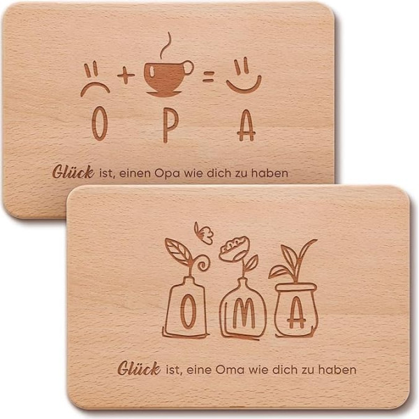 Natural beech wood - The breakfast plate is made from high-quality beech wood, which is known for its durability and natural beauty. Each plank is carefully processed to ensure a unique grain and smooth surface. Artistic engraving - Each grandma and grandpa's favourite plank is decorated with ornate engravings created with precision and attention to detail. These embellishments are not only decorative, but also durable and easy to clean so they last a long time. Timeless gift - regardless of the occasion and season, the bread boards are the perfect gift for your loved ones. Every time they use this plate, they will think of your care and appreciation. Multifunctionality - Whether as a cheese board, tapas plate, decoration element or serving tray, the possibilities of the plate are versatile. With its compact dimensions of 23 cm x 15 cm, it is also ideal for picnics or travel. EASY CARE AND SUSTAINABLE To ensure the longevity of the breakfast boards, we recommend maintaining them regularly with beeswax. Due to the natural variations of the wood, each piece can be unique. To clean, just wipe gently with a damp cloth, however, the plate should not be soaked in water or put in the dishwasher for a long time. › See more product details