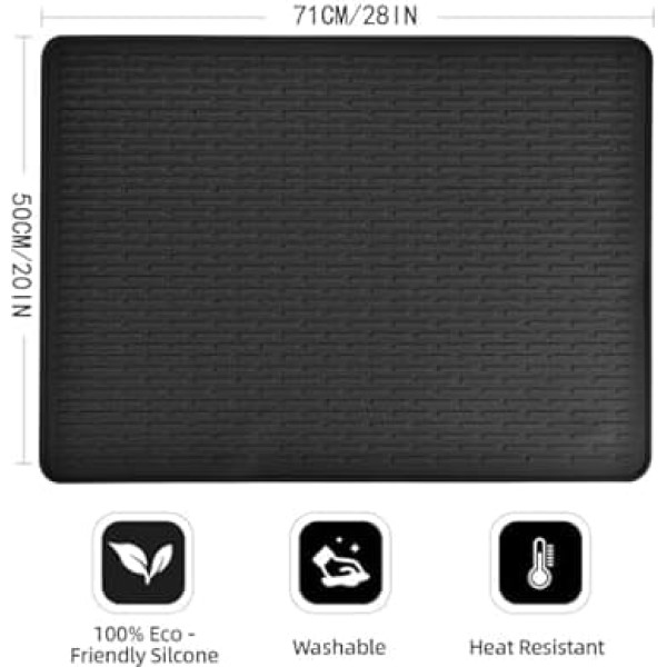 Product material: our heat-resistant mats are made of high-quality heat-resistant silicone and can withstand temperatures up to 230°C/450°F Product size: electric stove - full protection - extra large mat 71 x 50 x 0.25 cm effectively protects your worktop from high temperatures and prevents damage to hot air fryers or fondue pots and pans Cleaning and storage: easy to clean. After use, simply wipe with a damp cloth or wash with warm soapy water. Can be folded for storage to save space Silicone protective mat: our silicone oven lid is heat resistant up to 450 °F, raised wide ribs separate the fondue pot from the table and protect your kitchen surfaces from burns Kitchen multi-purpose mat: it is not only a silicone stove cover mat, but can also be used as a table for preparing food and as a drying mat › See more product details; Product description Description: Our silicone protective mat with the dimensions 71 x 50 x 0.25 cm is a beautiful kitchen decoration for worktops for food preparation Raised wide ribs separate the cooking pot from the table and protect your kitchen surfaces from burns. Wider streamlined rib design increases air flow and ventilation and catches water drops from dishes, fruits, vegetables and more Protects surfaces from scratches, scrapes, stains and dirt and keeps them clean. Specification: Material: Silicone. Colour: black. Size: 71 x 50 x 0.25 cm / 27.95 x 19.69 x 0.1 inches. Quantity: 1 piece. Package includes: 1 x fireproof silicone mat. Reminder: 1. Due to the light and screen difference, the item's color may be slightly different from the picture 2. Please allow a difference of 0.5 - 2 cm due to manual measurement; Product description Description: Our silicone protective mat with the dimensions 71 x 50 x 0.25 cm is a beautiful kitchen decoration for worktops for food preparation Raised wide ribs separate the cooking pot from the table and protect your kitchen surfaces from burns. Wider streamlined rib design increases air flow and ventilation and catches water drops from dishes, fruits, vegetables and more Protects surfaces from scratches, scrapes, stains and dirt and keeps them clean. Specification: Material: Silicone. Colour: black. Size: 71 x 50 x 0.25 cm / 27.95 x 19.69 x 0.1 inches. Quantity: 1 piece. Package includes: 1 x fireproof silicone mat. Reminder: 1. Due to the light and screen difference, the item's color may be slightly different from the picture 2. Please allow a difference of 0.5 - 2 cm due to manual measurement; Description: Our silicone protective mat with the dimensions 71 x 50 x 0.25 cm is a beautiful kitchen decoration for worktops for food preparation Raised wide ribs separate the cooking pot from the table and protect your kitchen surfaces from burns. Wider streamlined rib design increases air flow and ventilation and catches water drops from dishes, fruits, vegetables and more Protects surfaces from scratches, scrapes, stains and dirt and keeps them clean. Specification: Material: Silicone. Colour: black. Size: 71 x 50 x 0.25 cm / 27.95 x 19.69 x 0.1 inches. Quantity: 1 piece. Package includes: 1 x fireproof silicone mat. Reminder: 1. Due to the light and screen difference, the item's color may be slightly different from the picture 2. Please allow a difference of 0.5 - 2 cm due to manual measurement