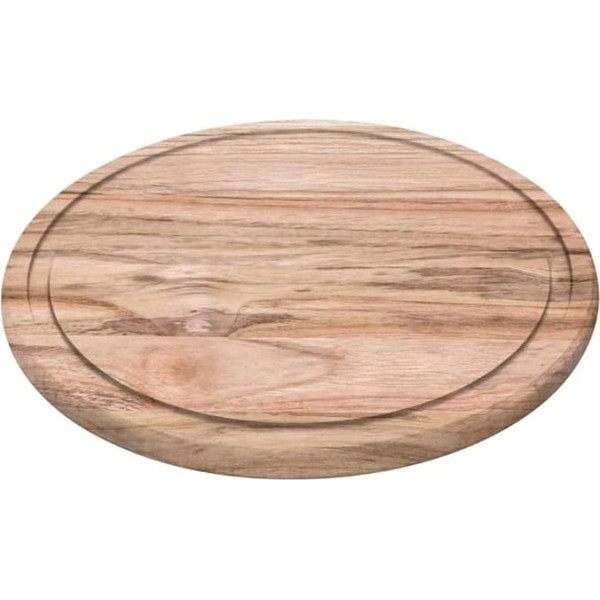 Steak plate, chopping board with practical juice groove Material: FSC certified teak wood With natural antibacterial protection Excellent break and wear resistance Blade-friendly surface Diameter: 26 cm, height: 1.5 cm Made in Brazil › See more product details