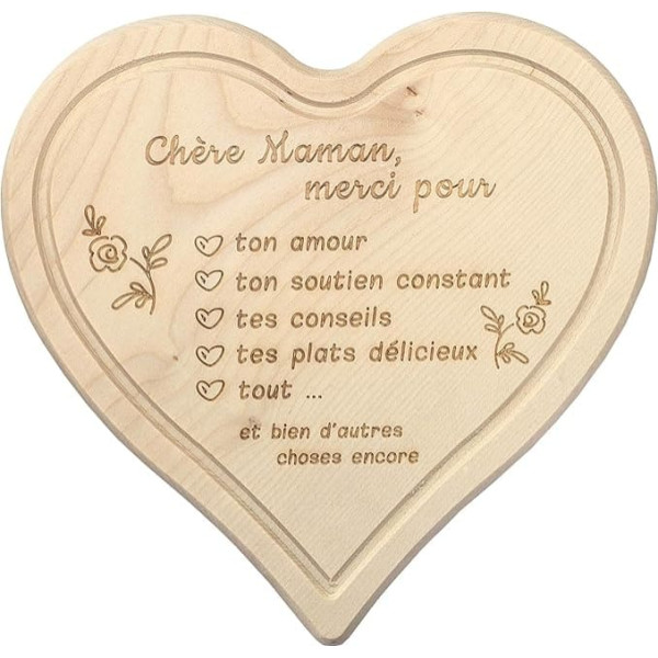 Spruchreif: all Spruchreif products are made in Germany. We at Spruchreif manufacture personal gift items made of wood using the latest laser technology. All our products are designed and refined in Germany. Versatile wooden board: the heart-shaped chopping board is equipped with a juice groove and is ideal for serving breakfast and other meals. The kitchen board can be used as a bread board, snack board, serving board or carving board for cooking and grilling. Mum gift: the heart-shaped breakfast board is a beautiful gift for Mother's Day and a great surprise for birthday or Christmas for all mothers. Perfect as a gift idea for Valentine's Day, birthday, Christmas or as a little gift in between. Care: Before the first use and then at regular intervals the chopping board should be treated with wood oil! Not suitable for dishwashers. Please use warm water and a mild detergent. Material: The maple wood is FSC certified and is made from sustainable cultivation. Dimensions: 24 x 24 x 1.5 cm › See more product details