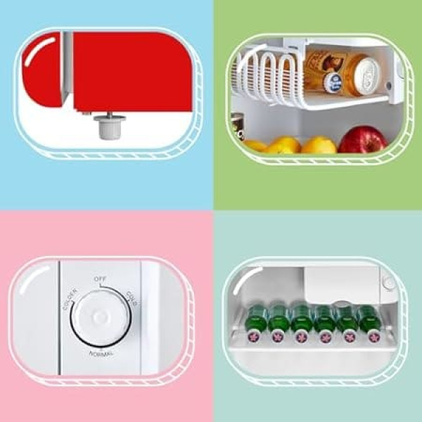 Retro Design - This small office fridge features an elegant, classic design that will add a touch of elegance to your kitchen or other rooms. The handle makes it easy to open the door. Large capacity and compact size - The bedroom bar fridge has dimensions of 485 x 440 x 500 (L × W × H) (mm) and is suitable for placement in the office, bedroom, dormitory, hotel or kitchen. Cooling compartment - The cooling compartment of this cool box is suitable for food or drinks that need to be cooled quickly. Do not store food in this compartment for more than 2 hours. Adjustable thermostat and removable shelf - The adjustable thermostat allows you to keep your food at a temperature of 1℃ to 10℃, and the removable shelf makes it easy to manage the space of the mini fridge. Class E environmentally friendly - This vintage fridge is environmentally friendly and works with low power consumption and low noise level (41 dB). To save energy, there is no bulb in the fridge. › See more product details