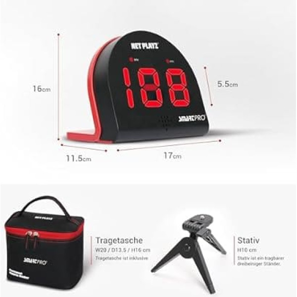 LED Indicator: Perfect for long distance hands-free use, the LED indicator allows for easy reading and can accurately display speeds in motion mode from 40-199 km/h and in sleep mode from 5-199 km/h. Accuracy: With the device instantly accurate readings and allows access to the last 10 measured times for detailed analysis. Multi-sport playing fields: this versatile shooting speed radar allows precise measurements in a wide range of sports such as football, golf, football, cricket, baseball, hockey, lacrosse and more as the angles are adjustable for optimal results. Includes: This freestanding shooting speed radar with carry case and tripod allows for easy and quick setup anywhere. Gift ideas: the best sports gift for your children, family, friends or yourself. › See more product details
