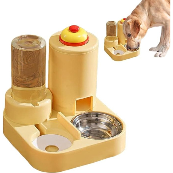 All-in- Food & Water Set - This cat dish with water bottle features a combined food and water bowl set, providing an efficient solution for feeding your small to medium-sized cats and dogs. It ensures that pets have both water and food in convenient place. Detachable Design for Easy Cleaning - The detachable bowls allow for easy removal and cleaning, making maintenance quick and simple, keeping your pet's feeding area neat and hygienic without the hassle of difficult-to-clean designs. Innovative Bell Feature - Equipped with a bell that alerts you when your pet has finished eating or drinking, this unique feature ensures you're always aware of when it's time for refills, making feeding times more organized. Wet and Dry Food Compatibility – This bowl set is versatile, designed to accommodate both wet and dry food, making it suitable for a variety of pet diets, whether your pet prefers kibble or canned food. Pet- Materials - Made from high-quality, materials, this food and water bowl set is designed for long-lasting durability and is for your pet, ensuring they eat and drink in a secure environment. › See more product details; Product description Product description The Cat Dish with Water Bottle is a convenient water and food bowl set designed for small and medium-sized cats and dogs. Featuring a detachable design, the bowls are easy to clean, and the innovative bell alerts you when your pet needs a refill. This versatile set is suitable for both wet and dry food, making it ideal for a variety of pet diets. Made from high-quality, materials, this and pet- bowl set ensures your furry friend enjoys their meals in a clean and organized feeding space. Specification: Product size: about 26x26x27cm/10.24x10.24x10.63 inches Material: PP, stainless steel. Kettle capacity: 1.2 L. Pack list: Cat bowl with water dispenser*1set Directions 0; Product description Product description The Cat Dish with Water Bottle is a convenient water and food bowl set designed for small and medium-sized cats and dogs. Featuring a detachable design, the bowls are easy to clean, and the innovative bell alerts you when your pet needs a refill. This versatile set is suitable for both wet and dry food, making it ideal for a variety of pet diets. Made from high-quality, materials, this and pet- bowl set ensures your furry friend enjoys their meals in a clean and organized feeding space. Specification: Product size: about 26x26x27cm/10.24x10.24x10.63 inches Material: PP, stainless steel. Kettle capacity: 1.2 L. Pack list: Cat bowl with water dispenser*1set Directions 0; Product description The Cat Dish with Water Bottle is a convenient water and food bowl set designed for small and medium-sized cats and dogs. Featuring a detachable design, the bowls are easy to clean, and the innovative bell alerts you when your pet needs a refill. This versatile set is suitable for both wet and dry food, making it ideal for a variety of pet diets. Made from high-quality, materials, this and pet- bowl set ensures your furry friend enjoys their meals in a clean and organized feeding space. Specification: Product size: about 26x26x27cm/10.24x10.24x10.63 inches Material: PP, stainless steel. Kettle capacity: 1.2 L. Pack list: Cat bowl with water dispenser*1set Directions 0