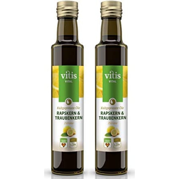 VITIS Vital Rapeseed & Grape Seed Oil "Lemon", Cold Pressed, Pack of 2 (2 x 250 ml)
