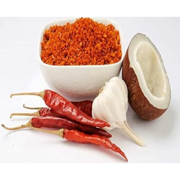 100 g hausgemachter Knoblauch und Kokosnuss trocken Chutney würzig Vada PAU Bombay Stil Chutney heiß und würzig indischer Stil