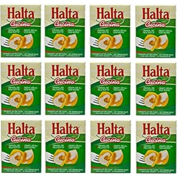 12 x Halta Cucina Preparato Alimentare UHT per Cucina Creamy Preparation UHT for the Kitchen Ideal for Pasta, Sauces, Pizza Cooking Cream 200 ml