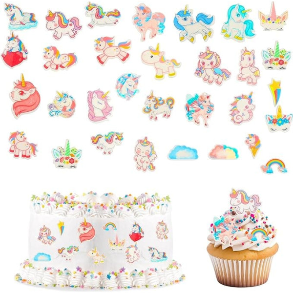 GoldRock Pack of 80 Unicorn Cake Decorations, Edible Cake Toppers, Birthday Girls, Edible Paper Unicorn Decoration Cake, Unicorn Muffin Decoration, Edible, Unicorn Cake Topper, Unicorn Cake Decoration