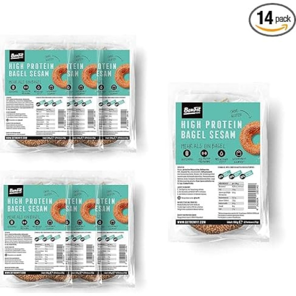 BenFit High Protein Bagel Sesame – 7 x 150 g – Gluten-Free Protein Bread – High-Protein, Low Fat & Calorie Reduced