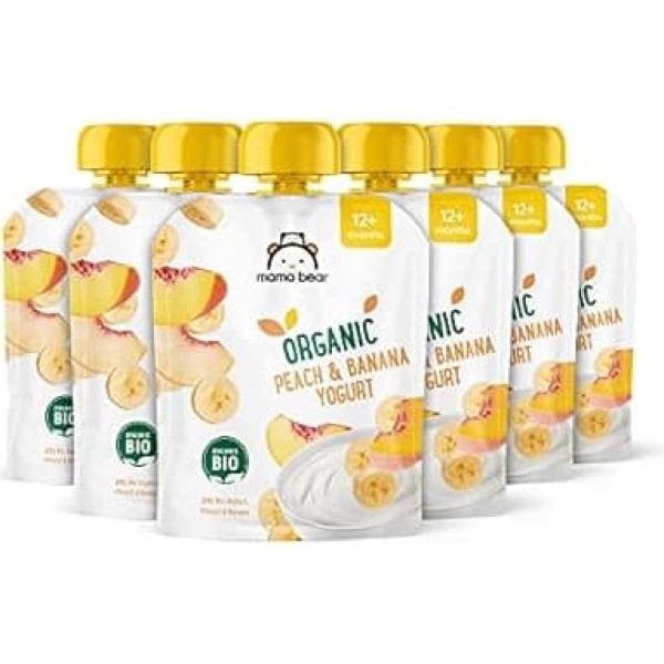 Amazon Brand - Mama Bear Organic Yogurt Preparation Peach, Banana and Yogurt, Vegetarian, 90g (6-Pack)