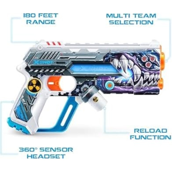 Ultimate laser experience: Unlike any other laser blaster brand X-Shot Laser360° delivers maximum game-play fun with innovative 360° infrared technology integrated into the goggles. Next level performance: The X-Shot Laser360° comes with 2 laser blasters and two 360° glasses. An unlimited number of players can be divided into up to 4 teams. Laser beams can reach an incredible 180 feet. REAL INNOVATION: The glasses in the Laser360° packages have three integrated sensors that create an infrared halo around the players. This innovation makes it impossible to cheat during laser battles, making the laser blaster experience as realistic as possible. Package includes: 2 x laser 360° laser blasters, 2 x laser 360° infrared glasses X-SHOT PROMISE: Our mission is to add value to our fans worldwide. Our \; Product description Product Description Improve your game with the Laser360°. The new X-Shot range gives you the ultimate laser day experience and blasting fun of the next level. Players can team up or compete against opponents in intense laser battles one to one. Thanks to multiple sensors integrated into the glasses, players can mark their opponents from anywhere via laser tag. Multiple sensors built into players' glasses produce a 360° infrared signal around the player's head and body and allow you to mark it from all directions. X-Shot is the first brand to launch this feature. Safety Warning Warning: Not suitable for children under 36 months. Choking hazard. Small parts.; Product description Product Description Improve your game with the Laser360°. The new X-Shot range gives you the ultimate laser day experience and blasting fun of the next level. Players can team up or compete against opponents in intense laser battles one to one. Thanks to multiple sensors integrated into the glasses, players can mark their opponents from anywhere via laser tag. Multiple sensors built into players' glasses produce a 360° infrared signal around the player's head and body and allow you to mark it from all directions. X-Shot is the first brand to launch this feature. Safety Warning Warning: Not suitable for children under 36 months. Choking hazard. Small parts.; Product Description Improve your game with the Laser360°. The new X-Shot range gives you the ultimate laser day experience and blasting fun of the next level. Players can team up or compete against opponents in intense laser battles one to one. Thanks to multiple sensors integrated into the glasses, players can mark their opponents from anywhere via laser tag. Multiple sensors built into players' glasses produce a 360° infrared signal around the player's head and body and allow you to mark it from all directions. X-Shot is the first brand to launch this feature. Safety Warning Warning: Not suitable for children under 36 months. Choking hazard. Small parts.