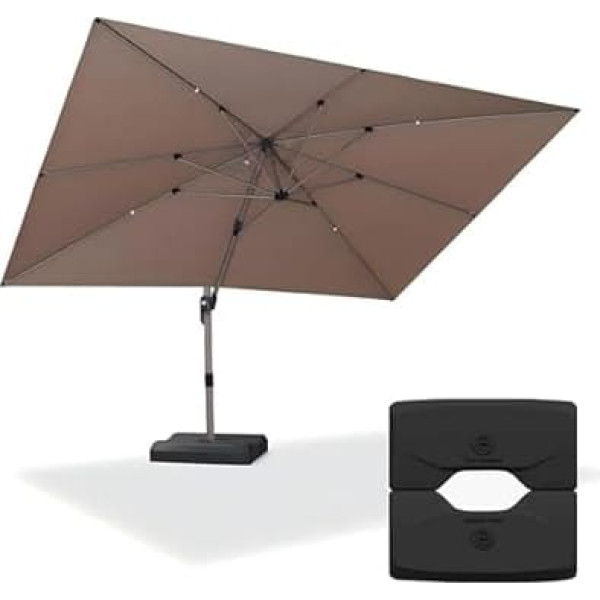 PURPLE LEAF Sonnenschirm Rechteckig 300 x 400 cm mit Ständer Alu Ampelschirm Groß XXL 360° Drehbar Gartenschirm mit Kurbel Neigbar Waterdicht Sonnenschutz Marktschirm UV 50+ für Garten, Taupe