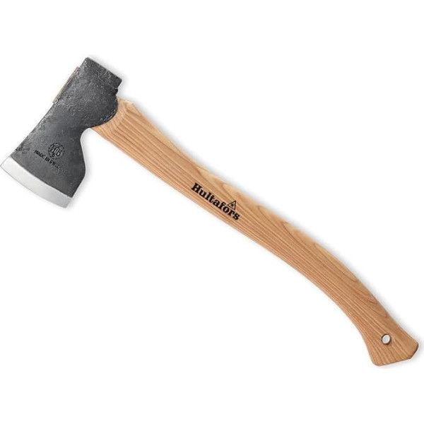 Contents: hand-forged hunting and forest axe DVARDALA 960 g including blade guard made from sustainable Swedish cow leather. The axe can be resharpened. Dimensions: the small axe is 450 mm long. Their total weight is 960 g, with their head weight ?g. Material: the splitting axe is made of high-quality materials. The axe head is made of high-quality CO2 neutral Swedish steel with a hardness of 55 HRC and coated with linseed oil as corrosion protection. The handle is made of North American hickory wood, which is flexible and stable at the same time. In order to guarantee a secure connection to the handle, the axe head is double attached to the handle with both a wooden wedge and a steel ring. Use: the hand-forged axe can be used for various work, such as wood splitting, woodworking, outdoor and survival activities, separating branches and branches and much more. can be used. Thanks to its high head weight, wood and tree trunks can be easily split. The linseed oil impregnated handle fits perfectly in the hand and makes work easier. Premium axes – Since 1697, our premium axes have been handmade in the traditional way in Hults Bruk, Sweden. With over 325 years of experience, our blacksmiths shape Swedish steel into high-quality axes giving them high durability and service life. Each axe is unique that can be passed on over generations with proper use. › See more product details; Product description The hand-forged Hult axe is made in our forge in southern Sweden, in Hults Bruk. The splitting axe is made from premium materials, such as Swedish steel and hickory wood. The head shape of this axe is specially designed for splitting logs. The cutting edge has a slightly convex cut, which can be easily resharpened. The handle can also be replaced if required. With proper care, this axe will last for years and can be passed down through generations.; Product description The hand-forged Hult axe is made in our forge in southern Sweden, in Hults Bruk. The splitting axe is made from premium materials, such as Swedish steel and hickory wood. The head shape of this axe is specially designed for splitting logs. The cutting edge has a slightly convex cut, which can be easily resharpened. The handle can also be replaced if required. With proper care, this axe will last for years and can be passed down through generations.; The hand-forged Hult axe is made in our forge in southern Sweden, in Hults Bruk. The splitting axe is made from premium materials, such as Swedish steel and hickory wood. The head shape of this axe is specially designed for splitting logs. The cutting edge has a slightly convex cut, which can be easily resharpened. The handle can also be replaced if required. With proper care, this axe will last for years and can be passed down through generations.