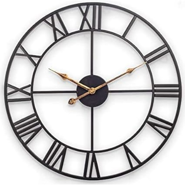 Finish to perfection and great decorations: the perfect blend of vintage meets industry, this large vintage wall clock is made of iron in classic black and instantly adds character and charm to your home decor. 40 cm industrial retro wall clocks are a great decoration for living room, kitchen, restaurant and hotel lobby etc. Easy to see: when it comes to your home decor, you want something that stands out. This 40 cm vintage wall clock does just that with its golden clock hands and minimalist black frame, a vintage style home decor clock with Roman numerals that is easy to read even for people with limited vision. Enjoy your peace of mind: the quiet ticking of your wall clock can be soothing, but it is also annoying when you try to sleep. Our quiet without ticking noise wall clock is a quiet quartz mechanism - it does not tick, which means you can enjoy its elegance and beauty without annoying sounds. Fits effortlessly into any interior: whether you have a country house style kitchen, a modern living room, a boho bedroom or a minimalist office, this large decorative wall clock fits anywhere. Traditional Roman numerals made of black vintage show a timeless effect that looks fantastic in any atmosphere. What a clever way to equip your favourite room with accessories! No assembly required and easy to hang: this vintage style wall clock is ready to hang without wasting time mounting. Insert 1 AA battery and the quiet wall clock is ready to hang on the wall, and no help is required. › See more product details