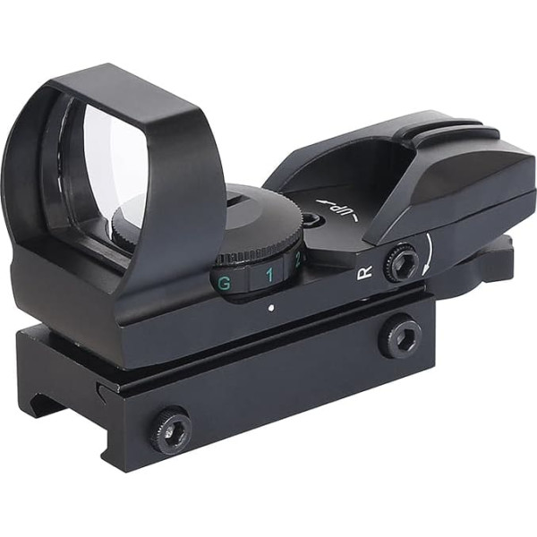 Red dot visor with multi-coated 33mm objective lens that increases light transmission and delivers more brightness. Provides a wide field (19 m on 100 m) so that the target does not escape from your eyes. The lens cover can significantly protect the red dot visor when not in use. Red and green illuminated 4 reticle with 5 brightness settings provides unlimited eye relief and corrected parallax. Different patterns meet different conditions. Point, circle / point, crosshair / point, crosshair / circle / dot combinations. The Airsoft Red Dot Scope fits 20 mm/22 mm Weaver/Picatinny rails, stable and safe. No zero setting is required when remounting the removed visor. The included Allen key also helps you adjust the height and side easily. The reflective visor is made of aluminium alloy with anodised matte black design. Shock-resistant, fog-proof, splash-proof and lightweight (only 115 g), so aiming with the airsoft visor is possible in any terrain in any weather conditions. We offer 30 days return and refund and friendly customer service. Good airsoft visor for pistol, air rifle, crossbow and other rifle. › See more product details; Product description Description: ESSLNB Red Green Reflex Sight is made of solid metal, durable and easy to clean. Lightweight construction, waterproof, fog and shock resistant properties increase performance in all weather conditions. The red and green reticle each offers 4 different types of patterns that provide unlimited eye relief and corrected parallax, and makes it perfect for quick fire or shooting the moving targets. It also comes with free enclosed 20 mm/22 mm mounting rails. Convince yourself of the quality and performance of our products. Take it with you on your next hunting trip! Technical data: Object aperture: 33 mm. Brightness settings: 5 levels in red/green Field of view: 15.8 m @ 100 m. Eye Relief: Unlimited Wavelength: 650nm Output power: ≤ 5 mW. Battery required: 1 x CR2032. Case size: 82 x 66 mm. Weight: 115 g. Material: aircraft grade aluminum alloy Reticle: Four different reticles selectable via rotary knob. Suitable for 20 mm/22 mm standard Picatinny rail Package includes: 1 x 4 reticle red and green luminous dot visor. 1 x CR2032 battery. 2 x Allen keys. 1 x Rubber Lens Cap Cover 1 x cleaning cloth. 1 x instruction manual; Product description Description: ESSLNB Red Green Reflex Sight is made of solid metal, durable and easy to clean. Lightweight construction, waterproof, fog and shock resistant properties increase performance in all weather conditions. The red and green reticle each offers 4 different types of patterns that provide unlimited eye relief and corrected parallax, and makes it perfect for quick fire or shooting the moving targets. It also comes with free enclosed 20 mm/22 mm mounting rails. Convince yourself of the quality and performance of our products. Take it with you on your next hunting trip! Technical data: Object aperture: 33 mm. Brightness settings: 5 levels in red/green Field of view: 15.8 m @ 100 m. Eye Relief: Unlimited Wavelength: 650nm Output power: ≤ 5 mW. Battery required: 1 x CR2032. Case size: 82 x 66 mm. Weight: 115 g. Material: aircraft grade aluminum alloy Reticle: Four different reticles selectable via rotary knob. Suitable for 20 mm/22 mm standard Picatinny rail Package includes: 1 x 4 reticle red and green luminous dot visor. 1 x CR2032 battery. 2 x Allen keys. 1 x Rubber Lens Cap Cover 1 x cleaning cloth. 1 x instruction manual; Description: ESSLNB Red Green Reflex Sight is made of solid metal, durable and easy to clean. Lightweight construction, waterproof, fog and shock resistant properties increase performance in all weather conditions. The red and green reticle each offers 4 different types of patterns that provide unlimited eye relief and corrected parallax, and makes it perfect for quick fire or shooting the moving targets. It also comes with free enclosed 20 mm/22 mm mounting rails. Convince yourself of the quality and performance of our products. Take it with you on your next hunting trip! Technical data: Object aperture: 33 mm. Brightness settings: 5 levels in red/green Field of view: 15.8 m @ 100 m. Eye Relief: Unlimited Wavelength: 650nm Output power: ≤ 5 mW. Battery required: 1 x CR2032. Case size: 82 x 66 mm. Weight: 115 g. Material: aircraft grade aluminum alloy Reticle: Four different reticles selectable via rotary knob. Suitable for 20 mm/22 mm standard Picatinny rail Package includes: 1 x 4 reticle red and green luminous dot visor. 1 x CR2032 battery. 2 x Allen keys. 1 x Rubber Lens Cap Cover 1 x cleaning cloth. 1 x instruction manual