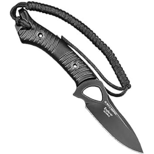 Premium Material High quality 8Cr14MoV steel blade with strong anti rust and anti corrosion ability; Fiberglass reinforced nylon handle, non-slip and durable; Plastic knife sheaths provide protection and are easy to carry. MULTIFUNCTIONAL DESIGN A sharp blade, a non-slip handle with a 2 meter survival cord; a flat screwdriver and a bottle opener at the end of the handle; a sheath with an alloy knife sharpener, a whistle and an adjustable belt clip. There are different colours available: handle in black, orange or green and the blade with 3 different surface treatments. A total of 9 of the appearance choices for you. Certification of design and utility model patents. SUITABLE FOR VARIOUS SITUATIONS This knife can be used for outdoor camping, hiking, survival emergencies and more. It is a perfect helper for outdoor survival. Strict quality control where each product goes through a rigorous selection and testing process to ensure that every detail meets the high quality standard. You will be happy to own this knife. › See more product details; Product description Blade steel: 8Cr14MoV. Blade design: satin. Blade length: 107 mm. Blade Length: 85mm Total length: 224 mm. Weight: 245g Handle: fibreglass reinforced nylon. Style: Multi-function fixed blade knife with plastic sheath; Product description Blade steel: 8Cr14MoV. Blade design: satin. Blade length: 107 mm. Blade Length: 85mm Total length: 224 mm. Weight: 245g Handle: fibreglass reinforced nylon. Style: Multi-function fixed blade knife with plastic sheath; Blade steel: 8Cr14MoV. Blade design: satin. Blade length: 107 mm. Blade Length: 85mm Total length: 224 mm. Weight: 245g Handle: fibreglass reinforced nylon. Style: Multi-function fixed blade knife with plastic sheath