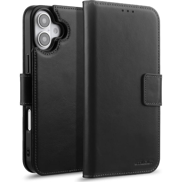 STILGUT Talis 2-in-1 Suitable for iPhone 16 Case with Leather Card Slot and Magnetic Removable Case, Compatible with MagSafe, Wallet Case, Mobile Phone Case with Compartments - Black