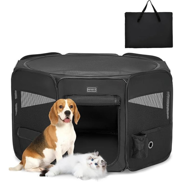 PETSFIT Foldable Puppy Run Animal Playpen for Small Animals Dogs Cats, Dog Playpen Outdoor Enclosure with Waterproof Base, Pop-up System Chew-proof Design, Black, M, 92 x 84 x 53 cm