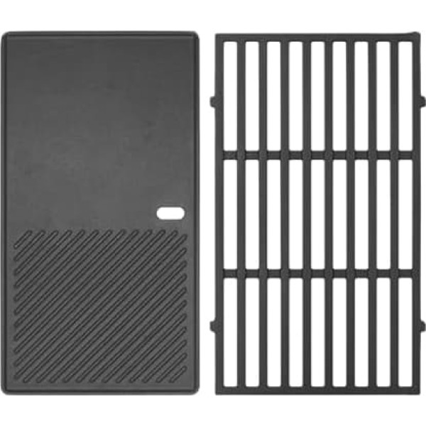 ☑️44.5 cm cooking grate and grill plate replacement for Weber Spirit I & II 200 series gas grills (2013 - 2016): Spirit E-210, E-220, S-210, S-220 cooking grates (with front control panels); original model Weber 7637; cast iron replacement grates for Weber 4601. 0074, 46100001 (2013), 46110001, 46113101, 47100001 (2013) Gas Grills; Kenmore 148.16656010, 148.23682310, 640-05057386-4, 9011899; Presidents Choice 56569 ☑️The perfect combination of grill grate and grill plate makes baking easier. The ribbed surface leaves a beautiful branding on your steak and the smooth side can be used like a flat grill; the hole of the grill plate - excess fat drains through the ribbing on the top of the plate and an additional opening Package contents: 2 pieces - grill grate and frying pans; Dimensions: 44.5 x 26 cm for each. Clean the grill parts before use and try to wait until there is no more water Grill grate and frying pans for Weber Spirit made of high-quality cast iron, which is durable with strong oxidation, corrosion and heat resistance, non-stick oil, extend the life of your grill ☑️Please check the size and part of your original part before purchasing. GriHero 100% satisfaction service, if you have any problem, please do not hesitate to contact us › See more product details
