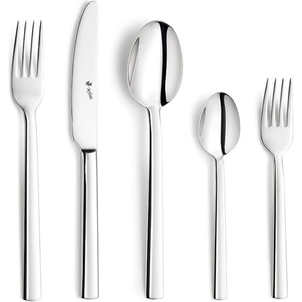 Elegant design: the harmonious, straight design of the cutlery set gives any table a modern and stylish ambience and adapts to any decoration. High quality: made of rust-proof 18/10 stainless steel, the set offers exceptional durability and a timeless aesthetic appeal with a highly polished surface. Versatile use: the Aura cutlery set is ideal for dinner parties, stylish family dinners and other festive occasions. After use, simply clean in the dishwasher. Complete set for 6 people: includes 6 dinner knives, cake forks, dinner forks, dinner spoons and coffee spoons - everything you need for a successful meal in a sociable round. Paul Wirths cutlery – high-quality table culture: Paul Wirths stands for more than 90 years of experience in high-quality table culture originating in Solingen, the city of blades. › See more product details