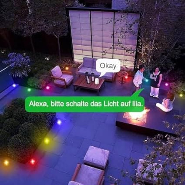 Upgrade design: warm white + RGBIC: you can set the light separately to warm white, or individual colours, or dynamic colours. Unique design by adding an intelligent IC in each light, a variety of colours, brightness, speed and running light effect modes can be changed simultaneously with frequency changes. Upgrade design 2: After free download of the app, you no need to register an account. Connect the app to the WiFi or mobile network of your home, and you can use the app to control the lights. If you want to connect via Bluetooth, you only need to activate Bluetooth to use the app. Alexa (Echo) compatible and timing function: control your LED recessed floor lights by voice with Alexa (in WiFi mode). It accepts commands such as \