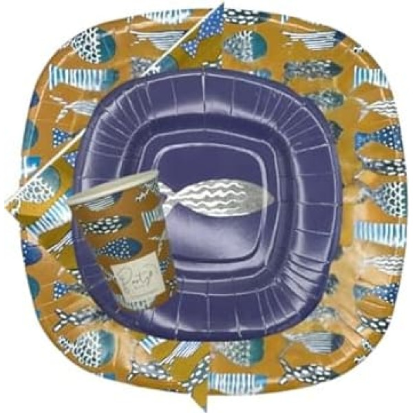 PartyBIO - Set of 220 Ocean - Biodegradable Disposable Tableware for Parties | Paper Plates, Paper Cups, Napkins for Events, for up to 40 Guests