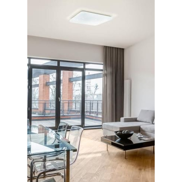 The ceiling light is equipped with a star decoration and thus offers a fascinating, glittering star effect. The warm white lighting of this lamp is suitable for wherever a cosy atmosphere should be created Thanks to the modern and simple design, this light can be combined in many areas - whether office, living room, kitchen, dining room, hallway or bedroom The advantage of this LED ceiling light is the slim design with low installation height. So it can be used universally in any room. With a lifespan of 15000 hours, the LED lamp is particularly energy-saving compared to an incandescent or halogen lamp. The LED light protects your budget and the environment Dimensions: height: 7 cm, length: 43 cm, width: 43 cm The energy-saving LEDs emit pleasant warm white light (33.5 watts, 3900 lumens); this product is an ambient product with an energy efficiency class F. Surrounding products are lights that can be disassembled for separate checking of the included light source(s) › See more product details; Product description Global & Local Around 70 EGLO companies take care of sales, service and partially regional marketing in over 50 countries around the world. Despite progressive internationalisation and globalisation, we are and remain a family business with Tyrolean roots. Light that inspires the masses. Just every two hours EGLO develops a novelty. On average, this is almost four novelties per working day. Last year alone, over 900 new products were developed and launched on the market. The current product range includes more than 4,000 items. Every day, we produce 80,000 lights that find their way to our customers worldwide.; Product description Global & Local Around 70 EGLO companies take care of sales, service and partially regional marketing in over 50 countries around the world. Despite progressive internationalisation and globalisation, we are and remain a family business with Tyrolean roots. Light that inspires the masses. Just every two hours EGLO develops a novelty. On average, this is almost four novelties per working day. Last year alone, over 900 new products were developed and launched on the market. The current product range includes more than 4,000 items. Every day, we produce 80,000 lights that find their way to our customers worldwide.; Global & Local Around 70 EGLO companies take care of sales, service and partially regional marketing in over 50 countries around the world. Despite progressive internationalisation and globalisation, we are and remain a family business with Tyrolean roots. Light that inspires the masses. Just every two hours EGLO develops a novelty. On average, this is almost four novelties per working day. Last year alone, over 900 new products were developed and launched on the market. The current product range includes more than 4,000 items. Every day, we produce 80,000 lights that find their way to our customers worldwide.