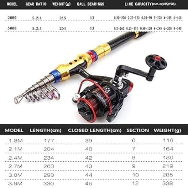 3. Ultrakurze Köder Angelrute und Angelrolle Kombination: sehr bequemer EVA-Griff, ergonomisches Design, bequem, rutschfest und langlebig. Kommt mit einer Angelrutentasche, geeignet für Reisen und Angeln. 1. Kombinationsliste von Reise-Angelgeräten: Kombination 1: Angelrute 1 Stück + Angelrolle 1 Stück, Kombination 2: Angelrute 1 Stück + Angelrolle 1 Stück + Angelruten-Verpackung 1 Stück, kostenlose Angelschnur 1 Stück. Detaillierte Daten entnehmen Sie bitte der Produktbeschreibung. 2. Teleskop-Angelrute:39-46cm nach der Kontraktion kann sie in einen Rucksack gesteckt werden. Hochdichte Kohlefaser, gute Zähigkeit, Robustheit und Haltbarkeit. Der Keramik-Führungsring beschädigt die Angelschnur nicht. Der Metallrollenhalter hat die Funktion, Meerwasser Korrosion zu widerstehen. 4:12 + 1BB Angelrolle: Edelstahlmaterial, ausgestattet mit hochfestem Power-Antriebsgerät, Echtzeit-Anti-Reversal. 5. Multifunktional - Ob Forelle, Barsch oder große Fische im Fluss, oder Angeln auf dem Dock oder Offshore, es ist eine hochwertige Angelrute. Sehr gut geeignet als Geschenk für Vater, Freund, Verlobte und Ehemann! › See more product details; Product description Produkthandbuch: 1. Die Schrumpfungsgröße der neuen rotierenden Teleskop-Köder-Angelrute beträgt 39–46 cm, und die ultrakurze Angelrute wird im Rucksack platziert, was sehr bequem zu tragen ist. Die Erweiterungsgröße beträgt 1,8 m, 21 m, 2,4 m, 2,7 m, 3,0 m, 3,6 m. Die exquisite und kompakte Angelrute ist auch für Kinder und Damen geeignet, bringt ihnen den Spaß am Angeln. 2.12+1BB Angelrolle, Edelstahlmaterial, robust und langlebig. 3. Die hellen Farben der Angelrute sorgen dafür, dass Sie sich beim Angeln wohler fühlen. 4. Die drehbare Teleskop-Angelrute hat 6 Längen zur Auswahl. Die Spezifikationen der Angelrute sind wie folgt: Produktdetails Einführung: 1,8 m Rute + 2000 Spule. Länge: 177 cm. Länge geschlossen: 39 cm. Abschnitt: 6. Gewicht: 116 g. Ködergewicht: 10–28 g. Durchmesser oben: 1,9 mm. Produktvorteile: Kurz und leicht, leicht zu tragen, 5 Schichten Carbon-Tuch, sehr stark. Hochdichte Kohlefaser hat eine starke Zähigkeit. Es lohnt sich, Angelruten zu kaufen und Freunden zu empfehlen! Lieferumfang: Packliste: 1 x Angelrute; Product description Produkthandbuch: 1. Die Schrumpfungsgröße der neuen rotierenden Teleskop-Köder-Angelrute beträgt 39–46 cm, und die ultrakurze Angelrute wird im Rucksack platziert, was sehr bequem zu tragen ist. Die Erweiterungsgröße beträgt 1,8 m, 21 m, 2,4 m, 2,7 m, 3,0 m, 3,6 m. Die exquisite und kompakte Angelrute ist auch für Kinder und Damen geeignet, bringt ihnen den Spaß am Angeln. 2.12+1BB Angelrolle, Edelstahlmaterial, robust und langlebig. 3. Die hellen Farben der Angelrute sorgen dafür, dass Sie sich beim Angeln wohler fühlen. 4. Die drehbare Teleskop-Angelrute hat 6 Längen zur Auswahl. Die Spezifikationen der Angelrute sind wie folgt: Produktdetails Einführung: 1,8 m Rute + 2000 Spule. Länge: 177 cm. Länge geschlossen: 39 cm. Abschnitt: 6. Gewicht: 116 g. Ködergewicht: 10–28 g. Durchmesser oben: 1,9 mm. Produktvorteile: Kurz und leicht, leicht zu tragen, 5 Schichten Carbon-Tuch, sehr stark. Hochdichte Kohlefaser hat eine starke Zähigkeit. Es lohnt sich, Angelruten zu kaufen und Freunden zu empfehlen! Lieferumfang: Packliste: 1 x Angelrute; Produkthandbuch: 1. Die Schrumpfungsgröße der neuen rotierenden Teleskop-Köder-Angelrute beträgt 39–46 cm, und die ultrakurze Angelrute wird im Rucksack platziert, was sehr bequem zu tragen ist. Die Erweiterungsgröße beträgt 1,8 m, 21 m, 2,4 m, 2,7 m, 3,0 m, 3,6 m. Die exquisite und kompakte Angelrute ist auch für Kinder und Damen geeignet, bringt ihnen den Spaß am Angeln. 2.12+1BB Angelrolle, Edelstahlmaterial, robust und langlebig. 3. Die hellen Farben der Angelrute sorgen dafür, dass Sie sich beim Angeln wohler fühlen. 4. Die drehbare Teleskop-Angelrute hat 6 Längen zur Auswahl. Die Spezifikationen der Angelrute sind wie folgt: Produktdetails Einführung: 1,8 m Rute + 2000 Spule. Länge: 177 cm. Länge geschlossen: 39 cm. Abschnitt: 6. Gewicht: 116 g. Ködergewicht: 10–28 g. Durchmesser oben: 1,9 mm. Produktvorteile: Kurz und leicht, leicht zu tragen, 5 Schichten Carbon-Tuch, sehr stark. Hochdichte Kohlefaser hat eine starke Zähigkeit. Es lohnt sich, Angelruten zu kaufen und Freunden zu empfehlen! Lieferumfang: Packliste: 1 x Angelrute