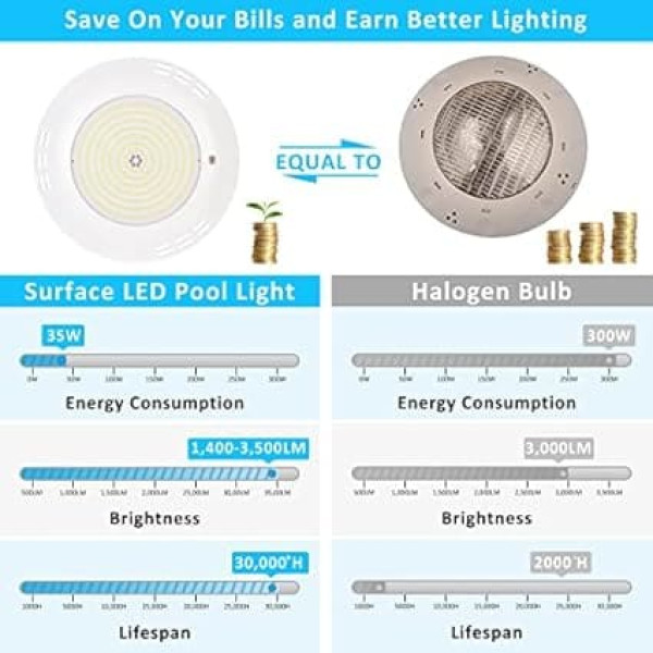 LyLmLe Ultra Flat LED Pool Headlight, 35 W Resin Filled Pool Lamp Surface-Mounted RGB Colour Changing Underwater Spotlight IP68 Waterproof 12 V AC Pool Light, On/Off Switch (No Remote Control)