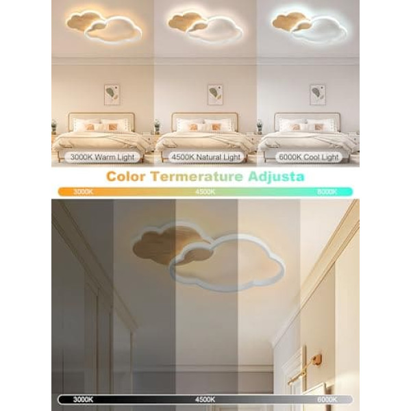 Creative clouds ceiling lamp: the ceiling lamp children's room adopts the shape of clouds and inlaid wooden blocks as a design, this light not only provides excellent lighting, but also impresses with a warm and cute design, as if the clouds of the sky are brought into the room. Its soft light is not only suitable for the children's room, but also creates a dreamlike atmosphere in which children can fall asleep peacefully. Dimmable ceiling lamp: with the remote control, you can adjust the brightness of the ceiling light bedroom in the range of 10%-100%, and the colour temperature of the lamp bedroom can also be adjusted between 3000K-6000K. At the same time, it emits a bright, soft and flicker-free light that does not harm children's eyes. Night light and timer function: the night light mode of the children's lamp ceiling can be adjusted by remote control and wall switch. The light in night light mode is very soft and is suitable for bedrooms and children's rooms. Set the timer function via the remote control and the light will automatically turn off after 30 minutes. Material: lamp body made of iron + lampshade made of acrylic + high-quality wood + LED light source, size and power: 50 x 31 x 6 cm, power 28 W, brightness 2800 lm, service life 30,000 hours High Quality Customer Service If you have any questions or problems after receiving the goods, please contact us immediately. We are committed to reply within 24 hours and offer a solution to ensure your satisfaction. › See more product details