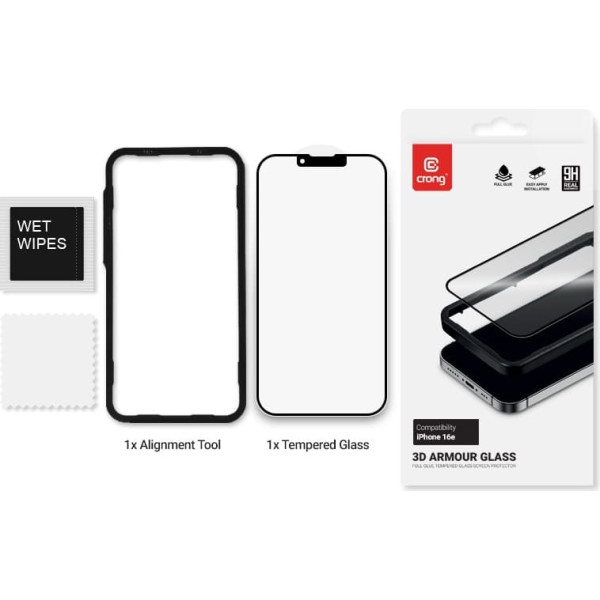 Crong 3D bruņu stikls - iphone 16e / iphone 14 / iphone 13 / iphone 13 pro + uzstādīšanas rāmis