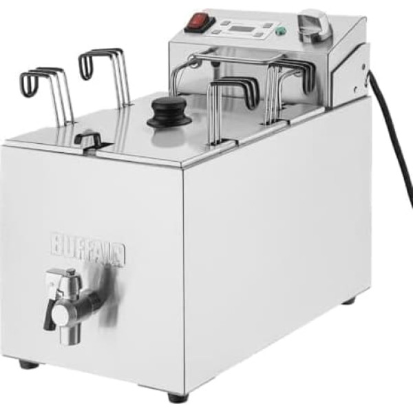 High quality and durable 304 stainless steel tank Removable element head with safety switch - easy to assemble and clean 4 Stainless Steel Mesh Baskets - Cook Portions to Order Digital timer with 4 program settings for even cooking Accurate thermostat control 30-110°C › See more product details; Product description Capacity: 8L; Product description Capacity: 8L; Capacity: 8L