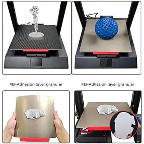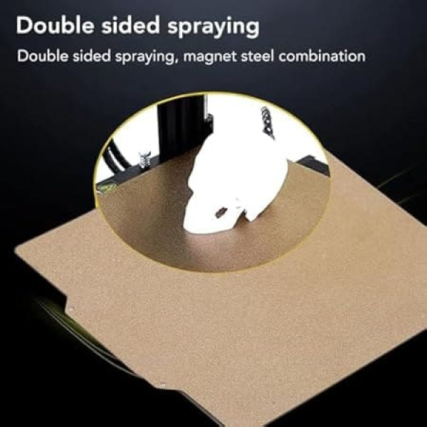 Good printing effect: Experience strong surface adhesion with this print bed, so no glue is required. Print without wavy edges with cold pressing for a high-quality finish. DOUBLE SIDED PRINTING: Equipped with a double-sided PEI coating, both sides of this print bed can be used for printing. Simply place it on the heated bed, remove the protective film and print directly without glue. EXCELLENT PEI AND SPRING STEEL: Made of high-quality PEI and spring steel, this print bed is robust, wear-resistant and has a long service life. It is designed to withstand frequent use without being easily damaged. Good compatibility: suitable for a variety of materials, including PLA, ABS, ASA, PETG, TPU, PC, PA and more. This print bed has been specially designed for the CR 6 MAX and other compatible models. Wide application: beyond 3D printing, this versatile print bed is used in model making, DIY projects and various crafts. Discover its potential in a variety of creative ventures. › See more product details; Product description 1. Good Printing Effect:This print bed has strong surface adhesion without the need for glue, and can be cold pressed and printed without wavy edges.2. Double-sided printing: this print bed is coated with double-sided PEI, both sides can be printed, you just need to put it on the heated bed, remove the protective film and print directly without glue.3. Good Compatibility This print bed is suitable for most materials such as PLA, ABS, ASA, PETG, TPU, PC, PA etc. It is suitable for CR 6 MAX and other models.4. Excellent PEI and Spring Steel :This print bed is made of excellent PEI and spring steel material, which is sturdy and wear-resistant, not easy to be damaged, and has a long service life.5. Wide application: this print bed has a wide range of applications and can be used for modelling, DIY, crafts, etc.Specification:Item type: print bedMaterial : PEI, spring steelSize: approx. 420*430mm/16.54*16.93inchParameter:PEI Injection Thickness:0.25mm/0.01inch, Spring Steel Thickness: 0.4mm/0.02inch, Magnetic Rubber Plate Thickness: 1.2mm/0.05inch, Total Thickness:2mm/0.08inchApplication:Direct install and use Package list: 1. Package list x double-sided textured PEI plate1 x magnetic rubber plate; Product description 1. Good Printing Effect:This print bed has strong surface adhesion without the need for glue, and can be cold pressed and printed without wavy edges.2. Double-sided printing: this print bed is coated with double-sided PEI, both sides can be printed, you just need to put it on the heated bed, remove the protective film and print directly without glue.3. Good Compatibility This print bed is suitable for most materials such as PLA, ABS, ASA, PETG, TPU, PC, PA etc. It is suitable for CR 6 MAX and other models.4. Excellent PEI and Spring Steel :This print bed is made of excellent PEI and spring steel material, which is sturdy and wear-resistant, not easy to be damaged, and has a long service life.5. Wide application: this print bed has a wide range of applications and can be used for modelling, DIY, crafts, etc.Specification:Item type: print bedMaterial : PEI, spring steelSize: approx. 420*430mm/16.54*16.93inchParameter:PEI Injection Thickness:0.25mm/0.01inch, Spring Steel Thickness: 0.4mm/0.02inch, Magnetic Rubber Plate Thickness: 1.2mm/0.05inch, Total Thickness:2mm/0.08inchApplication:Direct install and use Package list: 1. Package list x double-sided textured PEI plate1 x magnetic rubber plate; 1. Good Printing Effect:This print bed has strong surface adhesion without the need for glue, and can be cold pressed and printed without wavy edges.2. Double-sided printing: this print bed is coated with double-sided PEI, both sides can be printed, you just need to put it on the heated bed, remove the protective film and print directly without glue.3. Good Compatibility This print bed is suitable for most materials such as PLA, ABS, ASA, PETG, TPU, PC, PA etc. It is suitable for CR 6 MAX and other models.4. Excellent PEI and Spring Steel :This print bed is made of excellent PEI and spring steel material, which is sturdy and wear-resistant, not easy to be damaged, and has a long service life.5. Wide application: this print bed has a wide range of applications and can be used for modelling, DIY, crafts, etc.Specification:Item type: print bedMaterial : PEI, spring steelSize: approx. 420*430mm/16.54*16.93inchParameter:PEI Injection Thickness:0.25mm/0.01inch, Spring Steel Thickness: 0.4mm/0.02inch, Magnetic Rubber Plate Thickness: 1.2mm/0.05inch, Total Thickness:2mm/0.08inchApplication:Direct install and use Package list: 1. Package list x double-sided textured PEI plate1 x magnetic rubber plate
