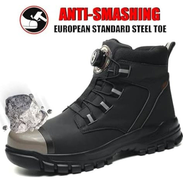 Safety Shoes Men's Work Shoes Safety Boots S3 Leather with Steel Toe Cap Waterproof Non-Slip Work Boots Rotary Knob Anti-Point and Anti-Smash Unisex 01