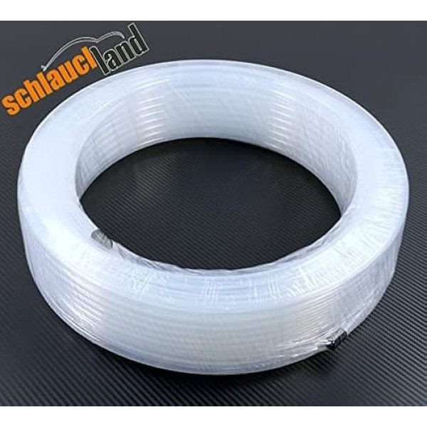 PFA hose, transparent, made of food-safe PFA - Perfluoroalcohol (similar to PTFE/TEFLON) in top quality for e.g. laboratories, gases, hydrogen, solvents, alcohols, etc., drinking water, wine, juices, beer, milk etc Certified to FDA 21CFR 177.2600 - American and European standards. 100% free from harmful substances and plasticisers, neutral in taste and odour. Very robust, flexible and durable Inner diameter = 22.25 mm, outer diameter = 25.4 mm, wall thickness = 1.575 mm, length = 50 m, colour: transparent - translucent, cold bending radius 20 °C = 50 cm Material: Perfluoroalcohol (PFA) copolymer - similar to PTFE (Teflon) | Application range: -200 to +260°C (briefly up to 280°C) | Burst pressure (20°C) approx. 16 bar Non-stick, anti-adhesive surface, easy to clean, weatherproof, UV-stable, salt and sea water resistant, mould-free, can be worked with a hot air dryer › See more product details; Product description Transparent PFA hose made from food-safe PFA - perfluorocoxy (similar to PTFE / TEFLON) in top quality for e.g. laboratories, gases, hydrogen, solvents, alcohols, etc., drinking water, wine, juices, beer, milk. Certified according to FDA 21CFR 177.2600 - American and European standards. 100% free from harmful substances and plasticisers, neutral in taste and odour. Very robust, flexible and durable. PFA is an evolution of the plastic PTFE - increased operating temperature, chemically resistant to chemicals and stable up to 260°C - autoclavable. Translucent - Good visual control of cleanliness and media flow. Pore-free - low diffusion. Made from high-purity crystalline granules from leading manufacturers such as DuPont, Dyneon and Daikin. Hose land - For professional use and OEMs - free from brandings and logos. Special requests - ask us! We manufacture to measure - fast and reliable. Technical data: Type: PFA hose transparent. Material: perfluorocoxy (PFA) copolymer - similar to PTFE (Teflon) Inner diameter: 1 mm to 38 mm. Wall thickness: 0.5 mm to 2 mm, see data sheet. Area of application: -50 to +260 °C (melting point 305 °C). See data sheet for print. Autoclavable and easy to clean. Non-stick / anti-adhesive surface. Weatherproof, UV stable, salt and sea water resistant, mildew free Transparent-translucent - visual control of the medium. Thermoplastic processable - Diameter stretches above 260°C (hot air dryer) and better bendability/tighter bending radii. Areas of application: Hose for food, drinks, water, milk chemical hose,high temperature hose,lab hose,3d printer Apparate engineering, process engineering, mechanical engineering, commercial and industry; Product description Transparent PFA hose made from food-safe PFA - perfluorocoxy (similar to PTFE / TEFLON) in top quality for e.g. laboratories, gases, hydrogen, solvents, alcohols, etc., drinking water, wine, juices, beer, milk. Certified according to FDA 21CFR 177.2600 - American and European standards. 100% free from harmful substances and plasticisers, neutral in taste and odour. Very robust, flexible and durable. PFA is an evolution of the plastic PTFE - increased operating temperature, chemically resistant to chemicals and stable up to 260°C - autoclavable. Translucent - Good visual control of cleanliness and media flow. Pore-free - low diffusion. Made from high-purity crystalline granules from leading manufacturers such as DuPont, Dyneon and Daikin. Hose land - For professional use and OEMs - free from brandings and logos. Special requests - ask us! We manufacture to measure - fast and reliable. Technical data: Type: PFA hose transparent. Material: perfluorocoxy (PFA) copolymer - similar to PTFE (Teflon) Inner diameter: 1 mm to 38 mm. Wall thickness: 0.5 mm to 2 mm, see data sheet. Area of application: -50 to +260 °C (melting point 305 °C). See data sheet for print. Autoclavable and easy to clean. Non-stick / anti-adhesive surface. Weatherproof, UV stable, salt and sea water resistant, mildew free Transparent-translucent - visual control of the medium. Thermoplastic processable - Diameter stretches above 260°C (hot air dryer) and better bendability/tighter bending radii. Areas of application: Hose for food, drinks, water, milk chemical hose,high temperature hose,lab hose,3d printer Apparate engineering, process engineering, mechanical engineering, commercial and industry; Transparent PFA hose made from food-safe PFA - perfluorocoxy (similar to PTFE / TEFLON) in top quality for e.g. laboratories, gases, hydrogen, solvents, alcohols, etc., drinking water, wine, juices, beer, milk. Certified according to FDA 21CFR 177.2600 - American and European standards. 100% free from harmful substances and plasticisers, neutral in taste and odour. Very robust, flexible and durable. PFA is an evolution of the plastic PTFE - increased operating temperature, chemically resistant to chemicals and stable up to 260°C - autoclavable. Translucent - Good visual control of cleanliness and media flow. Pore-free - low diffusion. Made from high-purity crystalline granules from leading manufacturers such as DuPont, Dyneon and Daikin. Hose land - For professional use and OEMs - free from brandings and logos. Special requests - ask us! We manufacture to measure - fast and reliable. Technical data: Type: PFA hose transparent. Material: perfluorocoxy (PFA) copolymer - similar to PTFE (Teflon) Inner diameter: 1 mm to 38 mm. Wall thickness: 0.5 mm to 2 mm, see data sheet. Area of application: -50 to +260 °C (melting point 305 °C). See data sheet for print. Autoclavable and easy to clean. Non-stick / anti-adhesive surface. Weatherproof, UV stable, salt and sea water resistant, mildew free Transparent-translucent - visual control of the medium. Thermoplastic processable - Diameter stretches above 260°C (hot air dryer) and better bendability/tighter bending radii. Areas of application: Hose for food, drinks, water, milk chemical hose,high temperature hose,lab hose,3d printer Apparate engineering, process engineering, mechanical enginee