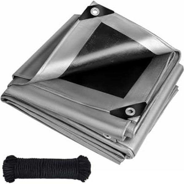 Waterproof: made of durable 260 g/m² tarpaulin material, which ensures excellent waterproof for outdoor use REINFORCED - With reinforced eyelets for secure anchoring and added durability. There are aluminium mounting eyelets at the corners and around the entire circumference of the tarpaulin (all approx. 50 cm). It is equipped with a 10 m long fixed rope. WEATHER RESISTANT - Designed to withstand harsh weather conditions such as rain, snow and UV rays or against moisture, dirt and dust. VERSATILE Suitable for various applications such as groundsheets for camping, outdoor, garden furniture covers, pool covers, trailers, construction site covers, garden sheds, trampoline covers, caravan covers and boat covers. UNIVERSAL FIT Provides a universal tent tarpaulin cover with adaptable size and design (includes extra large tarp, waterproof, heavy duty) › See more product details