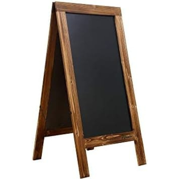 STURDY DESIGN - Our heavy duty hinges have been selected to ensure the board stands properly and lasts longer. Double-sided rustic chains enhance stability and style. Dimensions of the entire board (W x H): approx. 44 x 86 cm. The writing surface is approx. 34 x 60 cm wide and allows more space for messages. Folds flat for storage. Ideal for menus or promotional messages outside your shop, pub or coffee shop. Also looks great at wedding receptions, proms, sales, flea markets and anywhere else. › See more product details; Product description Material: wood, MDF. Care: wipe clean. Suitable for indoor and outdoor use, but it is not waterproof, avoid using in rainy days.; Product description Material: wood, MDF. Care: wipe clean. Suitable for indoor and outdoor use, but it is not waterproof, avoid using in rainy days.; Material: wood, MDF. Care: wipe clean. Suitable for indoor and outdoor use, but it is not waterproof, avoid using in rainy days.