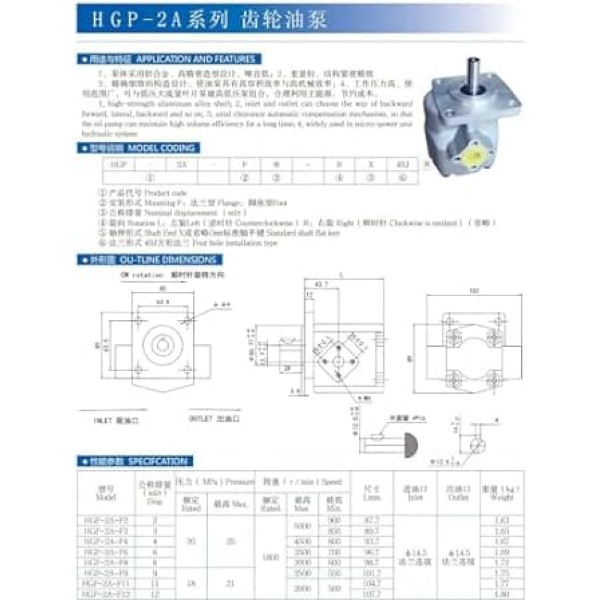 Hydraulic pump type: high pressure gear pump Model: HGP Material: aluminium alloy Drive mode: electric The key shank is a rounded shank as standard › See more product details; Product description Hydraulic pump type: high pressure gear pump. Model: HGP. Material: aluminium alloy. Drive mode: electric. The key shank is a rounded shank as standard Special feature: This replacement hydraulic pump is made of high-quality parts with high strength and hardness, which have good wear resistance and are durable. The parts of this hydraulic pump are available in standard specifications to meet your various combination needs. This hydraulic pump can be used in mobile equipment, construction equipment, agricultural equipment, machine tools, material handling equipment, mining equipment, garbage transporters, baling equipment and more.; Product description Hydraulic pump type: high pressure gear pump. Model: HGP. Material: aluminium alloy. Drive mode: electric. The key shank is a rounded shank as standard Special feature: This replacement hydraulic pump is made of high-quality parts with high strength and hardness, which have good wear resistance and are durable. The parts of this hydraulic pump are available in standard specifications to meet your various combination needs. This hydraulic pump can be used in mobile equipment, construction equipment, agricultural equipment, machine tools, material handling equipment, mining equipment, garbage transporters, baling equipment and more.; Hydraulic pump type: high pressure gear pump. Model: HGP. Material: aluminium alloy. Drive mode: electric. The key shank is a rounded shank as standard Special feature: This replacement hydraulic pump is made of high-quality parts with high strength and hardness, which have good wear resistance and are durable. The parts of this hydraulic pump are available in standard specifications to meet your various combination needs. This hydraulic pump can be used in mobile equipment, construction equipment, agricultural equipment, machine tools, material handling equipment, mining equipment, garbage transporters, baling equipment and more.