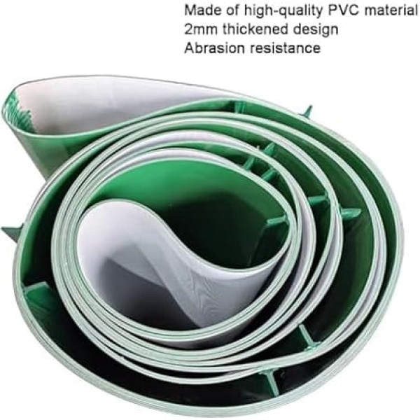 Langlebige PVC-Gummi-Oberfläche: Der Ersatzriemen kombiniert eine PVC-Gummi-Oberfläche mit ineinandergreifenden gummierten Stoffschichten, was Haltbarkeit, rutschfeste Leistung, Verschleiß- und Alterungsbeständigkeit und ein langlebiges Produkt gewährleistet. Elastisches Wellen-Design: Speziell für Lebensmittel-Fördersysteme entwickelt, verhindert die elastische Schallwand Schäden an empfindlichen Gegenständen wie Früchten und Melonen, mit anpassbarem Abstand und Höhe, um spezifische Bedürfnisse zu erfüllen. Optimiert für hohe Effizienz: Ideal für Kurzstreckenförderung und kleinere Kapazitäten, diese Riemen unterstützen einen kontinuierlichen, effizienten Betrieb auch bei steilen Steigungen, wobei Sicherheit und Benutzerfreundlichkeit priorisiert werden. 【Breites Anwendungsspektrum】Geeignet für verschiedene Umgebungen, einschließlich Werkstätten und große Fabriken, diese Gürtel transportieren effizient Gegenstände wie Glas- und Plastikflaschen, Metallgegenstände und Verpackungsmaterialien. Anpassungsoptionen erhältlich: Die Bänder bieten Flexibilität in Größen und Farben und haben eine Standarddicke von 2 mm und können in Breite, Länge und Oberflächenstruktur an spezifische Anforderungen angepasst werden. › See more product details; Product description Unser Förderband ist aus strapazierfähigem PVC-Material gefertigt, was Langlebigkeit und Zuverlässigkeit für verschiedene Transportbedürfnisse gewährleistet. Mit einer Dicke von 2 mm ist es so konzipiert, dass es den Strapazen des täglichen Gebrauchs standhält und gleichzeitig Flexibilität beibehält. Erhältlich in Breiten von 0,3 bis 1,5 m und Längen von 3,3 bis 30 m. Dieses Förderband kann an eine Vielzahl von Anwendungen angepasst werden. Sein effizientes Design spart nicht nur Zeit, sondern reduziert auch den Arbeitsaufwand, was ihn zu einer hervorragenden Wahl für den Transport von flachen Gegenständen wie Kartons, Kunststoffboxen und Schaumstoffboxen macht. Das Paket enthält ein Förderband, das bereit ist, Ihre Transportvorgänge zu verbessern.; Product description Unser Förderband ist aus strapazierfähigem PVC-Material gefertigt, was Langlebigkeit und Zuverlässigkeit für verschiedene Transportbedürfnisse gewährleistet. Mit einer Dicke von 2 mm ist es so konzipiert, dass es den Strapazen des täglichen Gebrauchs standhält und gleichzeitig Flexibilität beibehält. Erhältlich in Breiten von 0,3 bis 1,5 m und Längen von 3,3 bis 30 m. Dieses Förderband kann an eine Vielzahl von Anwendungen angepasst werden. Sein effizientes Design spart nicht nur Zeit, sondern reduziert auch den Arbeitsaufwand, was ihn zu einer hervorragenden Wahl für den Transport von flachen Gegenständen wie Kartons, Kunststoffboxen und Schaumstoffboxen macht. Das Paket enthält ein Förderband, das bereit ist, Ihre Transportvorgänge zu verbessern.; Unser Förderband ist aus strapazierfähigem PVC-Material gefertigt, was Langlebigkeit und Zuverlässigkeit für verschiedene Transportbedürfnisse gewährleistet. Mit einer Dicke von 2 mm ist es so konzipiert, dass es den Strapazen des täglichen Gebrauchs standhält und gleichzeitig Flexibilität beibehält. Erhältlich in Breiten von 0,3 bis 1,5 m und Längen von 3,3 bis 30 m. Dieses Förderband kann an eine Vielzahl von Anwendungen angepasst werden. Sein effizientes Design spart nicht nur Zeit, sondern reduziert auch den Arbeitsaufwand, was ihn zu einer hervorragenden Wahl für den Transport von flachen Gegenständen wie Kartons, Kunststoffboxen und Schaumstoffboxen macht. Das Paket enthält ein Förderband, das bereit ist, Ihre Transportvorgänge zu verbessern.